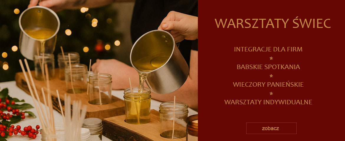 Naucz się, jak samodzielnie wykonać naturalne, ekologiczne świece sojowe z aromatycznymi olejkami eterycznymi. Na naszych warsztatach poznasz cały proces tworzenia świec — od wyboru zapachu po estetyczne wykończenie. To idealna okazja, by stworzyć wyjątkowy, pachnący prezent lub własną kolekcję świec.